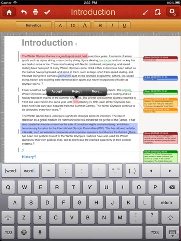 I specifically bought this to insert comments into Word documents while commuting. The description clearly says that the software supports this. This turns out to not be the case. (As far as I can tell, it also does not support inserting headers and footers, which it also advertises.) The features are actually very basic and do not match the feature list given.