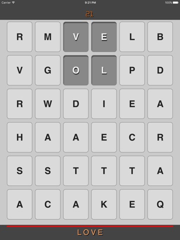 Instead of the traditional "all horizontal", "all vertical" and "all diagonal" type of words, in this game you may select a word by changing directions anytime. Sometimes you will need to twist your brain to find out how to form the word.