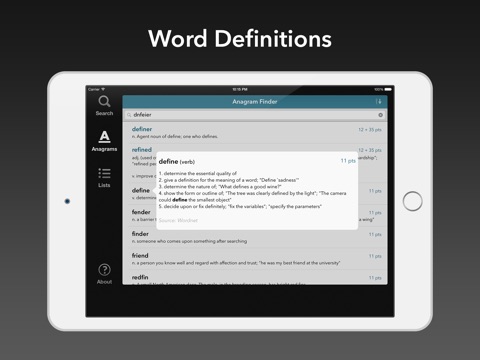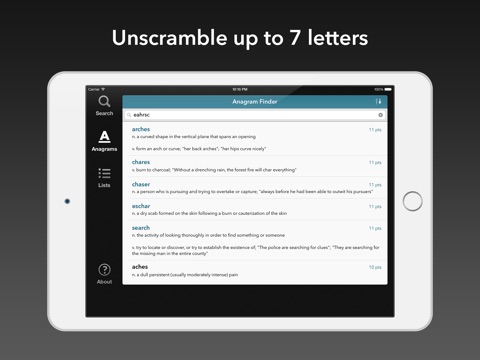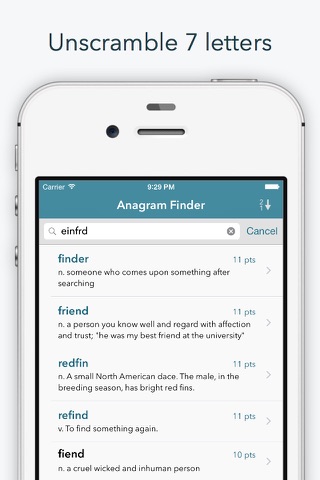 Word Lookup Lite is a free Anagram Finder and Dictionary for word games like Words With Friends, SCRABBLE®, Wordle, Letterpress, WordFeud, WELDER and crossword puzzles.