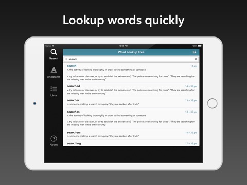 NB: This free edition is supported by ads. To remove ads and enable additional features, please check out Word Lookup Pro.