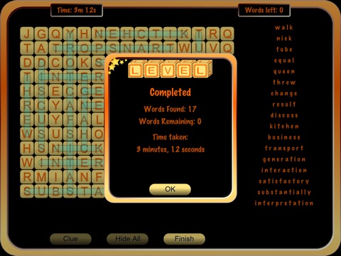 ● When a correct word is found then it is highlighted on the grid and the word list.