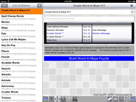 I found this app very difficult to use. Been trying to figure out how to make a puzzle with my own words for an hour now and still cant get it to work.