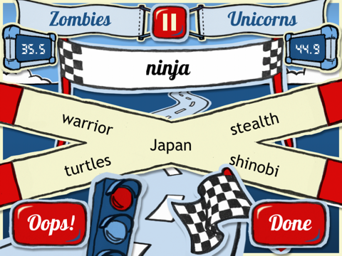 Waiting with friends to get into a concert? Notice an awkward silence at your family reunion? Just want an excuse to show off your iPhone at a party, but others consider that taboo? Word Race will get your friends and family laughing and having fun in no time! With just one iPhone, iPad or iPod Touch, play with up to 20 people around you. How can you get your team to say ninja without using any of the forbidden words: Japan, warrior, stealth, turtles or shinobi? The amusing way you and your friends will have to describe these words will lead to hours of fun. We’re sure you’ll like it, so this app is free with 42 sample words. When you’ve seen for yourself how much fun it is, we welcome you to buy our general pack of 500 words or our theme packs: Geography, Movies and more to come. They each have 200 words to keep the fun going. Never suffer a dull group moment again! This game can be played in English, Esperanto and German, so it’s also a great way to improve your foreign language skills.