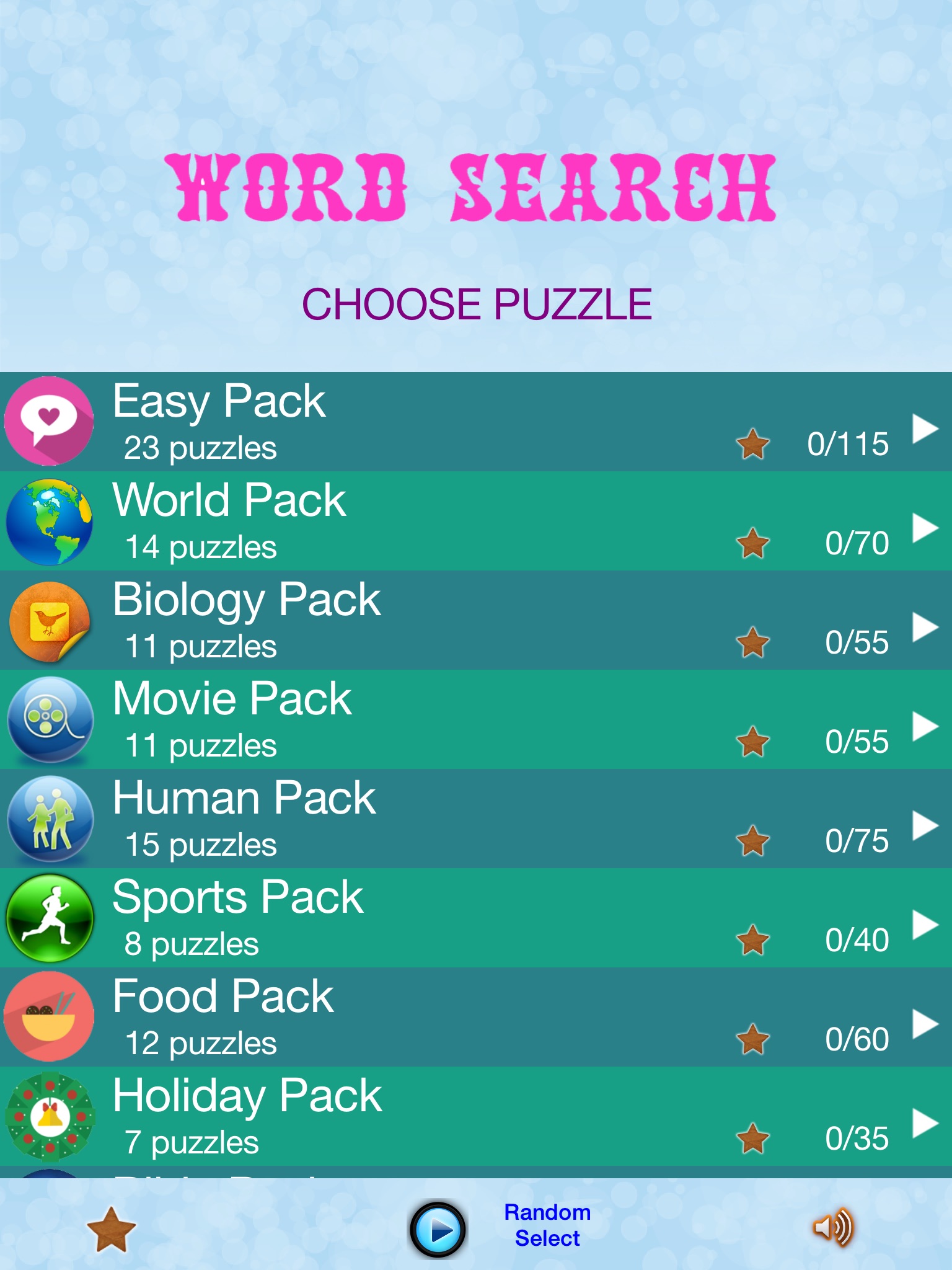 - 10 Categories: easy pack,word pack, biology pack,movie pack,human pack,sport pack,food pack,uncategorized pack