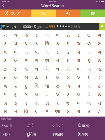 Gujarati Word Puzzle is an easy and fun game to improve the Gujarati vocabulary. It is based on the simple principle of finding hidden words from a grid of multiple characters.
