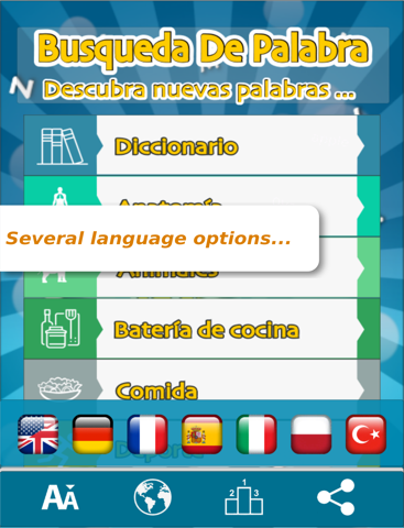 - English, French, German, Spanish, Italian, Polish and Turkish languages with hundreds of thousands of words on each are available to play with..