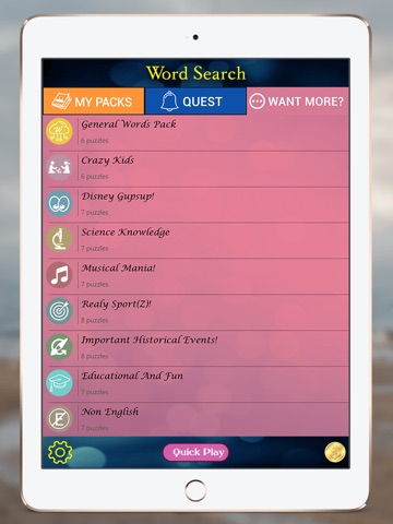 Word Search is word search plus trivia. Expand your vocabulary. The words are hidden in a new and interesting way each time you play, so you can play your favorite categories as often as you want.
