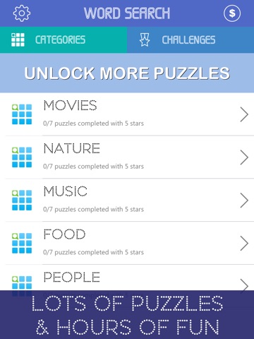 I really like word searches and this app is one of the best. Theres lots of categories, has a nice layout, smooth playing. Its challenging and fun.