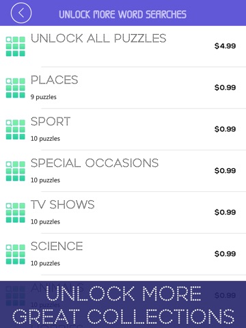 I enjoyed this game. It has plenty of word search categories and has something to please everyone. My only fault with this app is not fault of the developer I just dont like word searches that have backwards words.