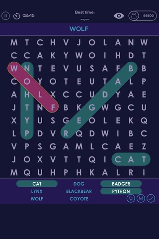The rules are simple. You need to find words hidden in a grid. Slide & drag your finger over them to solve the puzzle. The grids get larger as you progress, and the puzzles get trickier.
