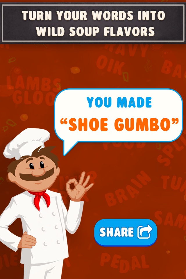 Turn your words into wild soup flavors and share them with your friends -- make them smile, laugh or gross them out, its up to you!