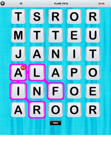 Search for hidden words on the board by swiping across adjacent letters. Valid word consists of at least 3 characters. Longer word rewarded by higher bonus points and extra bonus times.