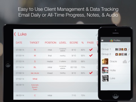 Easily create and edit client profiles and groups to maximize therapy time and practice. If you run out of time the Vault, Place, and Level of Difficulty is saved for each profile you work with, and returns you exactly to the place you left off, the next time you work with them.