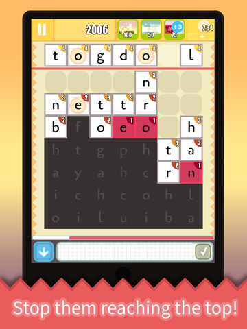 Some letters have bombs which will clear a nice chunk of the board. If thats not enough, collect gold coins and buy some help! You can destroy the bottom row, freeze time or increase the lives of every tile on the board.