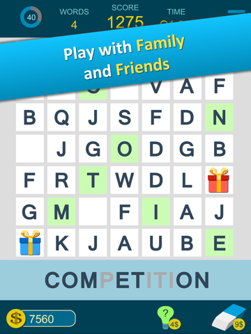 Start playing right now, no tutorial is needed. All you have to do is find the hidden letters on the board to make up to word as fast as you can. All the players have to solve the same puzzle at the same time.