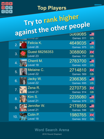 - At the end of each round, see your rank against your friends and the other players around the world
