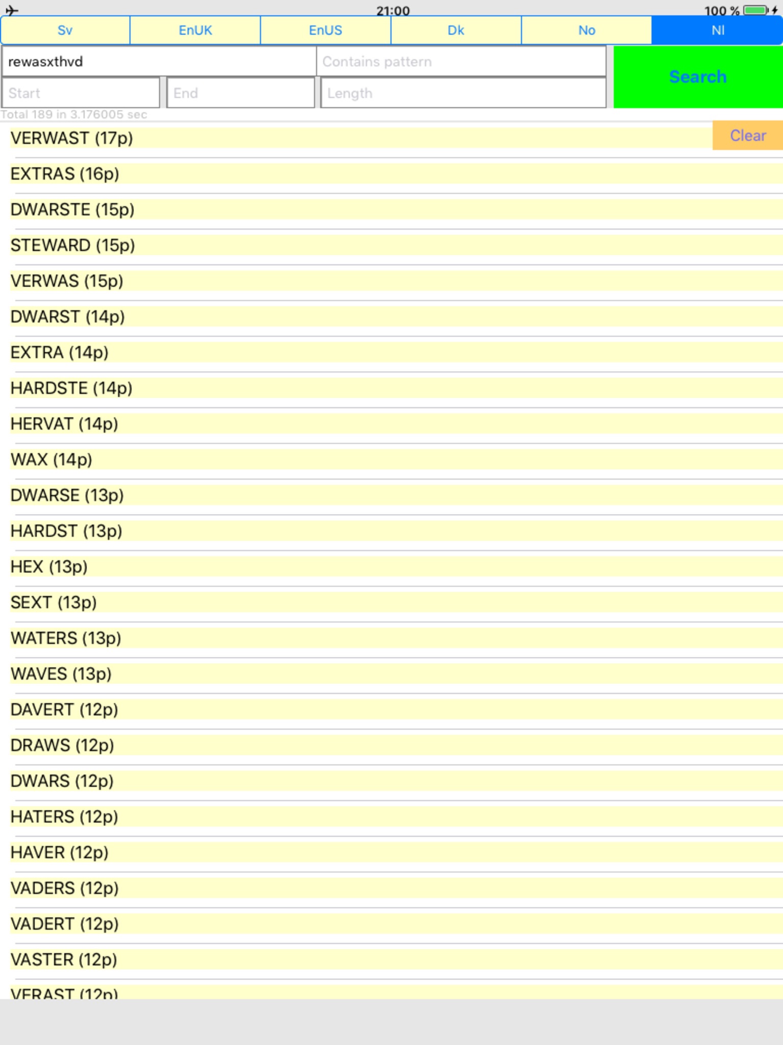 WordFeud Finder is completely free apps that contains more than 1.5 millions Swedish, English, Norwegian, Danish and Dutch words.