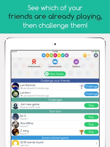 * See which of your friends are already playing, then challenge them! Or go up against random opponents across all platforms of the WordHub arena. Play on any device!