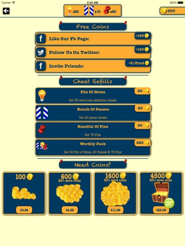 With every game played, you earn coins. Make sure you spend them wisely on helpful yet challenging cheats to help you guess the words.