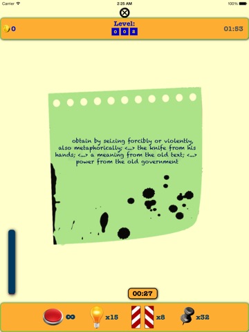 The idea behind Wordily is simple. Rearrange letter tiles to form correct words. How fast can your brain process? Score high enough to unlock tougher and tougher levels! Best of all, brag about your score in one touch!