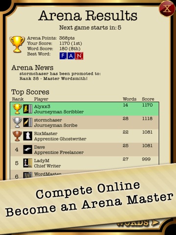 Or play with friends in the online Arena to see who can get the highest score or best word!