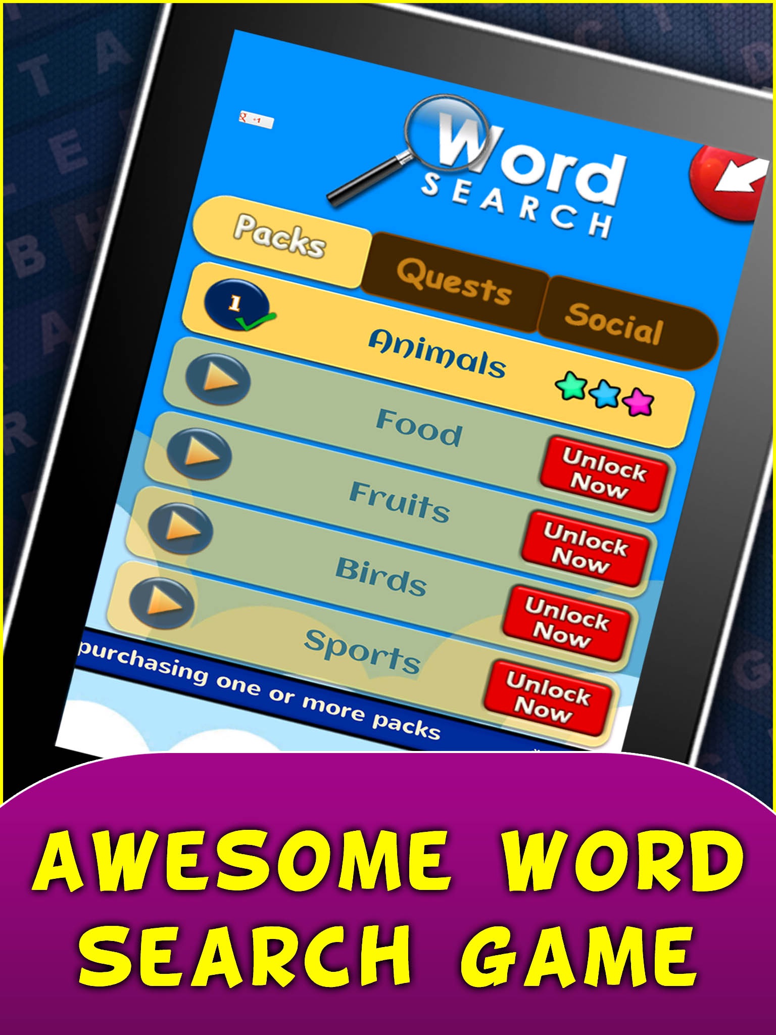 Each Pack is based on a topic, it has several hundreds of popular words which form unlimited levels to play.