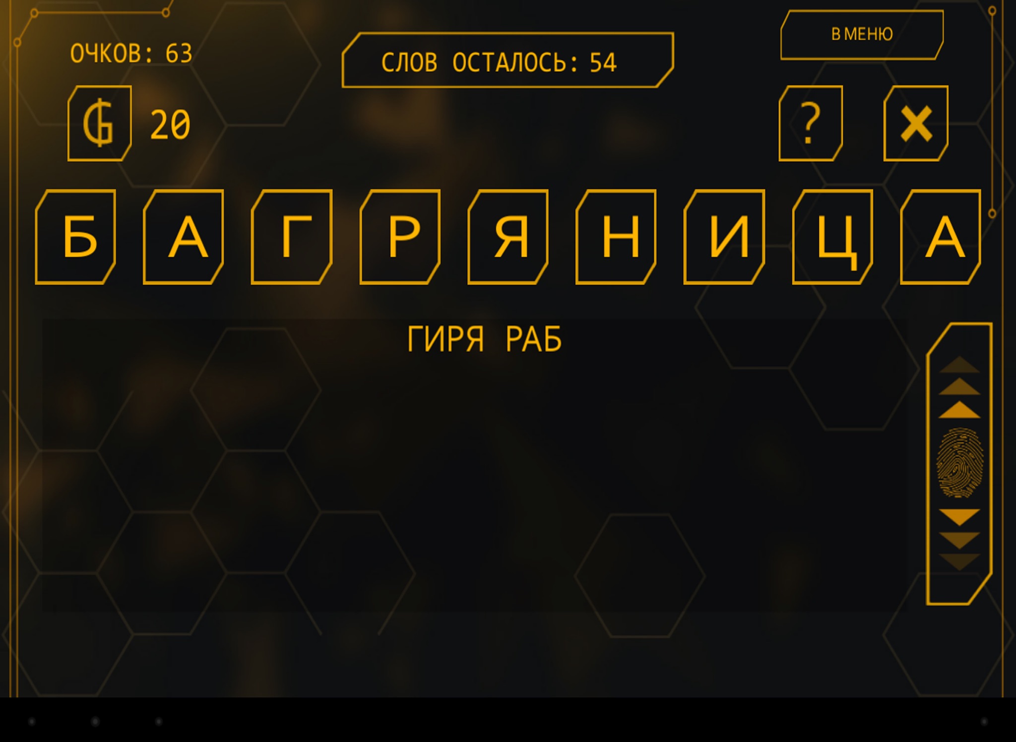 Отгадывайте слова, получайте за них очки, открывайте новые уровни и новые слова!