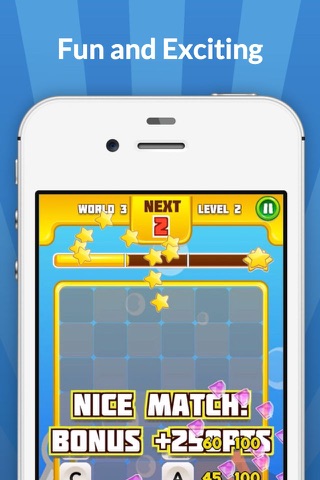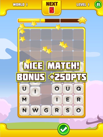 The goal is to spell words on the board, earn points and collect 3 stars win. Simple rules but dont be fooled, this game will give your brain and fingers a workout. Go for small words to keep your board clear or risk it with big words for maximum points! Longer words will get you bonus points.