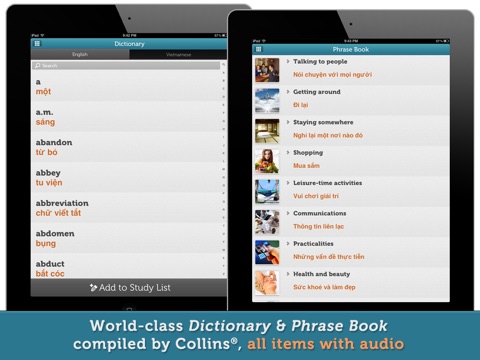All words and phrases were compiled by Collins® Dictionaries and feature accompanying audio recordings by native Vietnamese speakers.