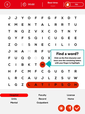 Select the words by clicking on the start of a word then drag your finger across to the end of the word you have found. When the correct words are found they are automatically crossed out. Find all words to get a new Wordy Nurse puzzle.