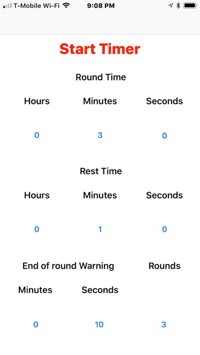 Workout Round Timer with adjustable times on Round length, Rest Length, Warning before end of round and end of rest.