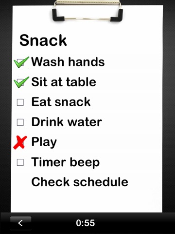 What to do when he/she is finished. Indicate next scheduled activity. May need to use a highly desired item/activity to increase motivation, though often being “finished” is motivating enough.