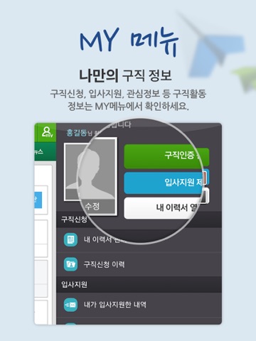 - 이력서/자기소개서 작성, 구직신청