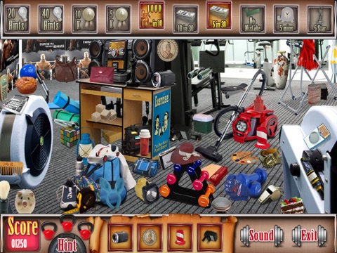 PlayHOG presents Workout, one of our newer hidden objects games where you are tasked to find 5 hidden objects in 60 secs. Your score is tied with a multiplier that increases as you find the right hidden objects, but beware, make a mistake and it will reset to 1. Try to get the highest score as you try to find all 400 hidden objects in Workout.
