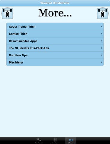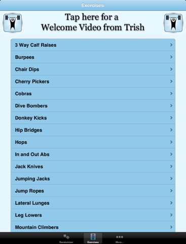 For the body of your dreams, be sure to follow the Trish’s Nutrition Tips and check out The 10 Secrets of 6-Pack Abs provided in the More Menu. Also, included in the Workout Randomizer App is an easily accessible exercise library of videos with demonstrations and explanations of all thirty of the program’s body weight exercises so that you can be sure that you are executing the perfect form for optimal results. Nutrition is an essential component of any physical fitness success or weight loss, so proper nutrition is highly encouraged to do alongside this program.