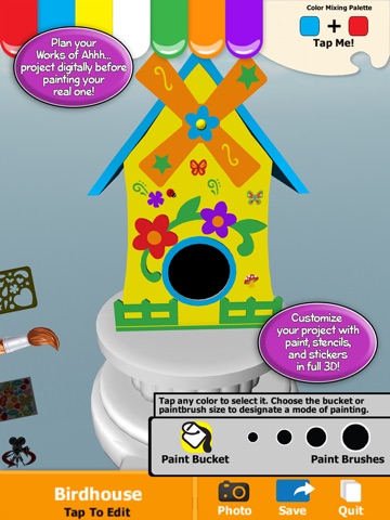 Works of Ahhh… has become a brand standard in wood painting kits. Now with our new 3D Painting App, you can plan your project from start to finish! The 3D Painting App is equipped with everything you would normally get in your Works of Ahhh… real wood craft kit. Now you can get your project just right by practicing on the App until you’re ready to start painting. If you’re not planning, you can keep on playing and make endless versions of your project.