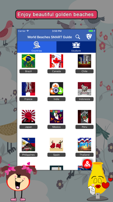 Check the list of must see beaches of the world with white, black or red sand. To go out with the setting sun on an empty beach is to truly embrace your solitude - said Jeanne Moreau. World Beaches SMART Guide is an app that gives you knowledge about Beaches around the world. The app gives you details about categories of Beaches under it, if any. The app provides information about various exotic,exciting Beaches, both country wise and citywise. You can sort the Beaches based on popularity and alphabetically.
