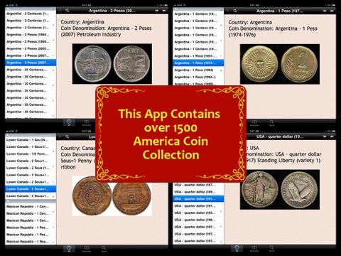 World Coin Collection (America) is an application containing images and information of 1,500 coins from the America Continent, including those made by the US, Canada, Mexico, Brazil and much more. It contains some coins made before 1900 and contains most coins made after 1900. It is by far the most complete and detailed Encyclopedia of coins collection available on the App Store.
