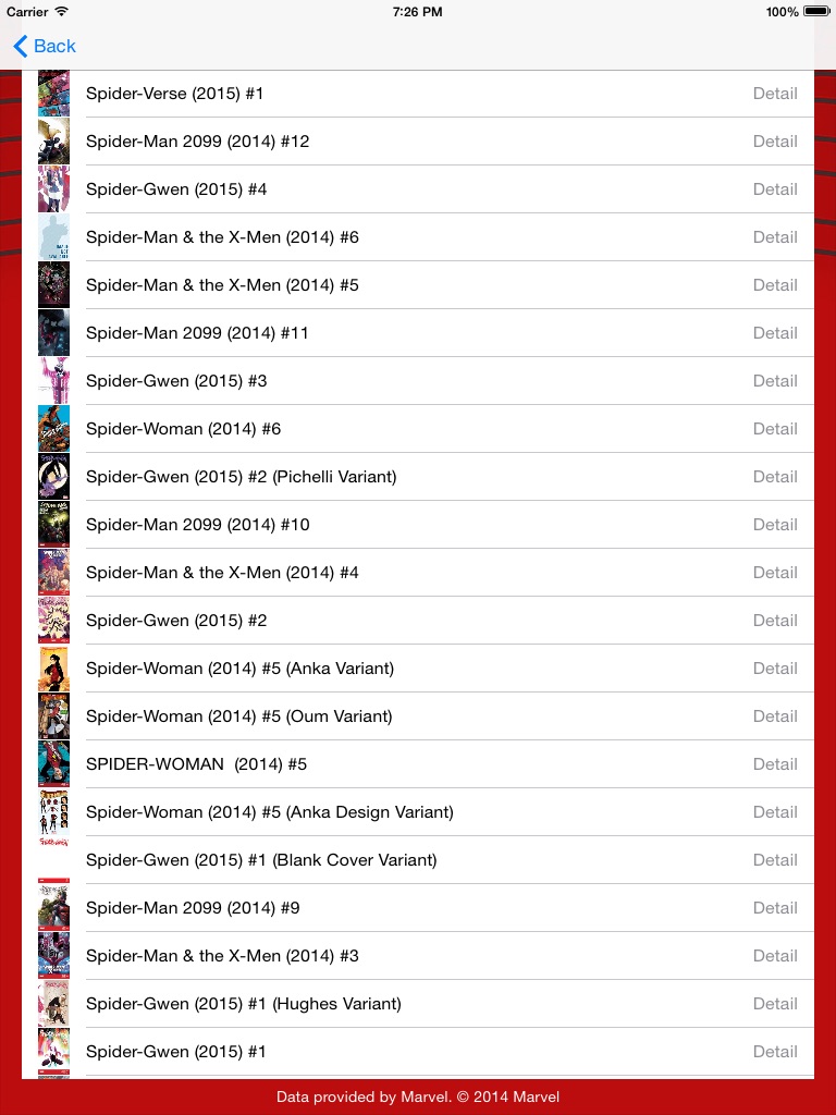 With this app you will be able to find any comic, find the comics of your favourite creators, be able to get information about events, etc.
