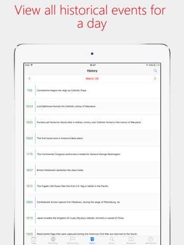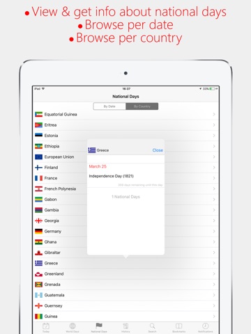 World Day includes a list of national days and anniversaries of 221 countries and over 70 religious observances for the current year. Also using World Day you can view all historic events for a day.