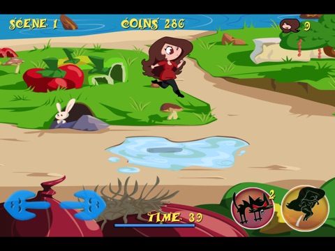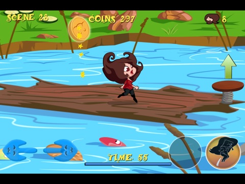 • Use springs to jump across rivers, holes, pools, poles, puddles, caramel, houses, cracks, boats, trees, barrels, rocks, ice cream, sweets, salad, spoons, soups, candies, cliffs and automatic springs to jump across scenes