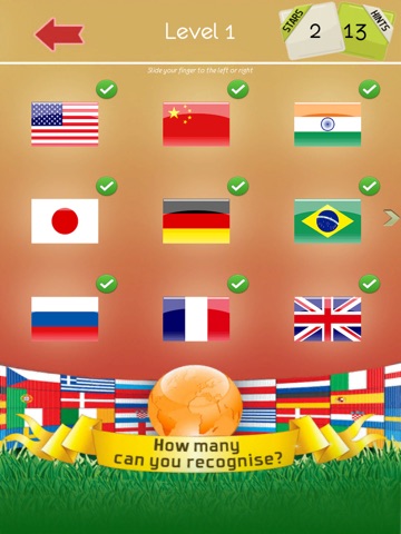 The game is OK, especially at the first few levels.. But then the descriptions and flags began to NOT match at all (particularly Caribbean and Asian countries). Misleading to people who are learning certain flags for first time. Ex: the very last flag in Level 8 is actually the defacto region of Somaliland, NOT San Marino! Also the names of both Congo countries are wrong. Please fix these careless mistakes.