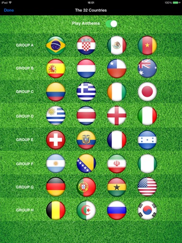 Dommage que les mises a jours des matchs et résultats ne sont pas faite en temps réel . Super les hymnes des équipes .