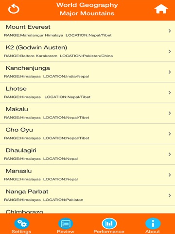 - View knowledge about world mountains as flashcards.