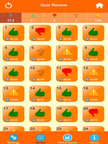 - View question order,correct,incorrect and achievements on quiz screen.