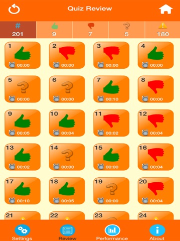 - View question order,correct,incorrect and achievements on quiz screen.