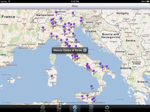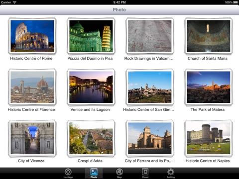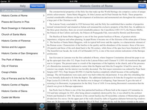 World Heritage in Italy is the tool for you to get world heritage information of Italy. You can get heritage list, every heritage introduction, local gallery, heritage map, and cloud photos. Everything is available in English, Chinese Traditional, Chinese Simplifier and Japanese. ( NOTICE:the heritage map and locate images need network service. )