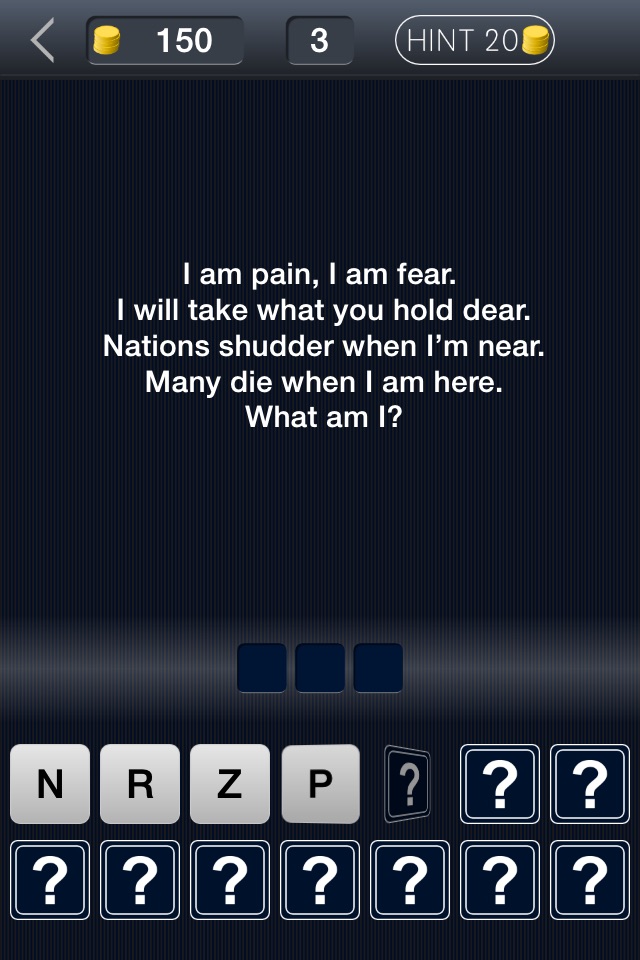 - 3 hints per riddle