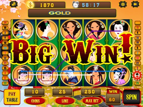 This game is fun, exciting and entertaining! If you love Las Vegas Casinos, you will love World of Samurai Casino Slots Pro - Play Slot Machines, Fun Vegas Games!!!!!!!!!!! Enjoy awesome Bonus Games and FREE COINS!! Invite your Facebook friends to join you.