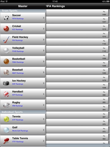 WORLD SPORTS RANKINGS with ADS brings soccer, basketball, ice hockey, volleyball and tennis rankings to you at your fingertips. Navigate and reference world’s “Top 50 Rankings” for team and individual sports alike. Furthermore, reference rankings according to zones (confederations/federations) for team sports.